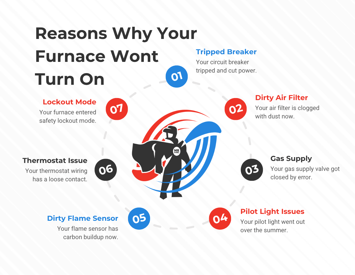 Before we dive into the seven main reasons your furnace won't turn on, let's knock out the basics. You'd be surprised how often the solution is simpler than you think.